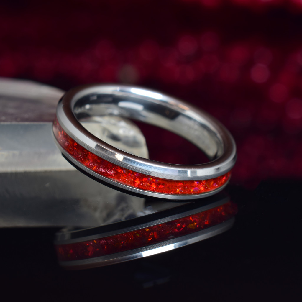 WOLFRAM-KARBID GYŰRŰ, TŰZVÖRÖS OPÁL ÉS METÁL PIGMENT BERAKÁSSAL - IZZÓ LÁVA