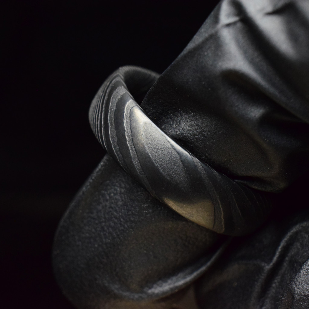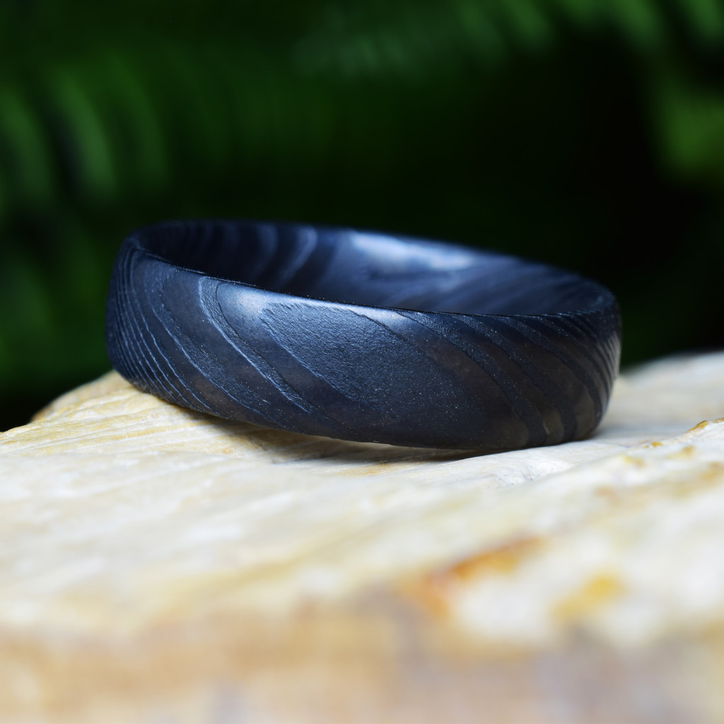Forged Damascus Steel Ring with scratch-resistant Black PVD coating!